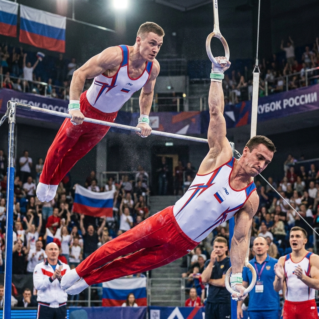 На гимнастическом Кубке России разразилась настоящая драма: судьба золотой медали решалась задолго после завершения выступлений. В центре внимания оказались два выдающихся спортсмена — юный талант Духно и опытный чемпион Маринов. Каждый из них стремился к победе, но исход их противостояния оказался не таким однозначным, как ожидали зрители.